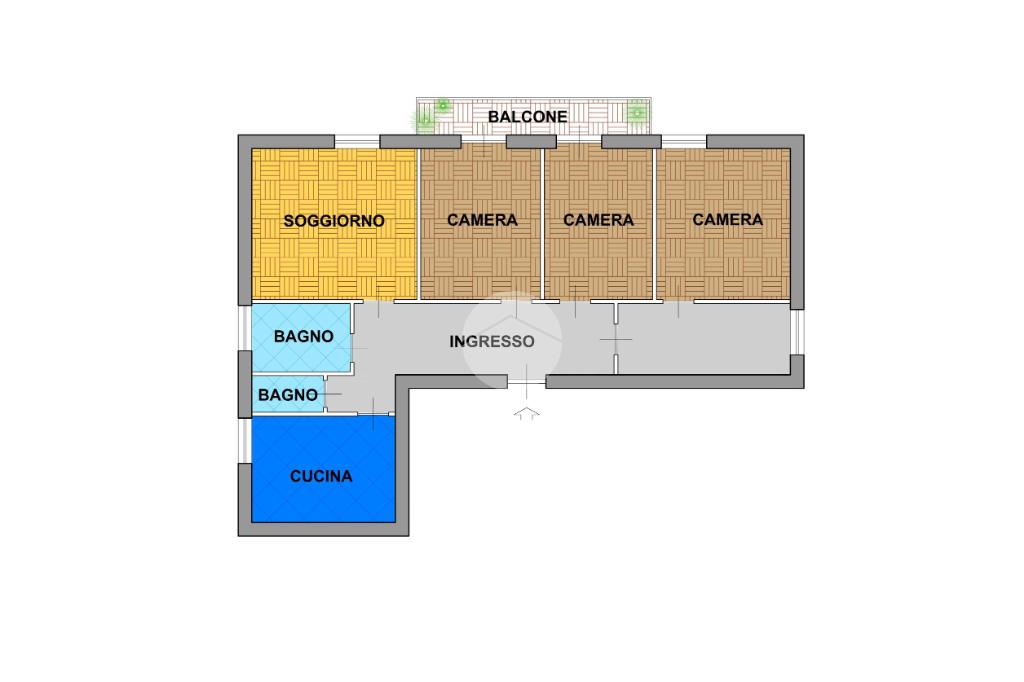 L'immobile è composto da ingresso, soggiorno, tre camere, cucina abitabile, due bagni, balcone e soffitta.